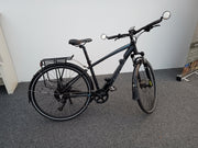 This is a fine example of a Carrera Crossfire, eBike version. It has a pannier rack, useful for commuting, shopping...